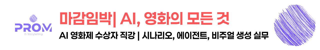 프롬 11월 수업 올인원패스 얼리버드는 마감되었습니다. AI 시나리오 클래스, AI 에이전트 워크숍, AI 영상생성 특강도 마감임박입니다. 2025 미국 AI 국제 영화제 수상 감독들의 노하우를 직접 듣는 특강과 토크도 준비했습니다. 프롬프트를 넘어 컨텍스트를 배우는 시간입니다. 자세한 내용은 위의 이미지 링크에서 확인하세요. 마법 같은 인연을 기다립니다. |