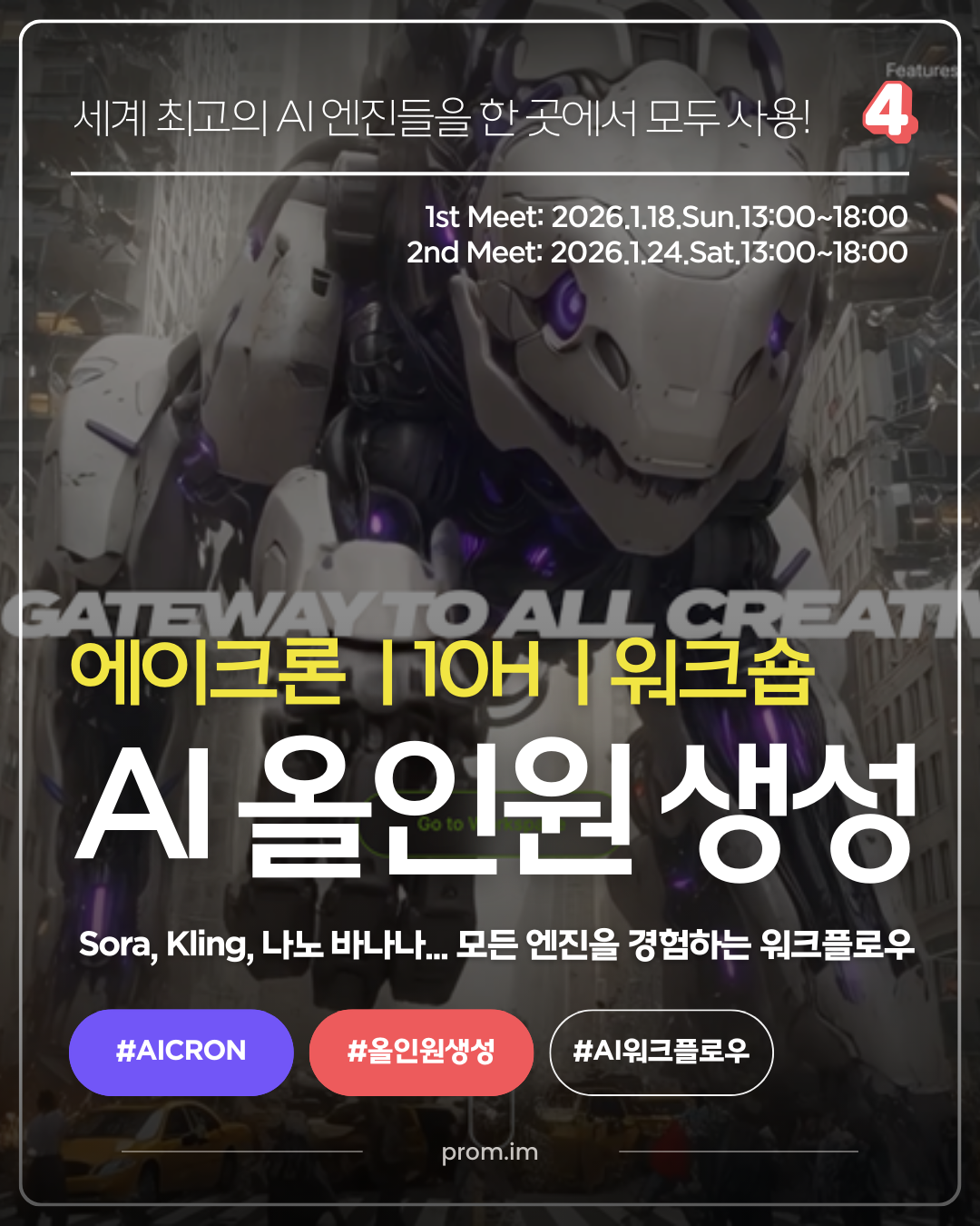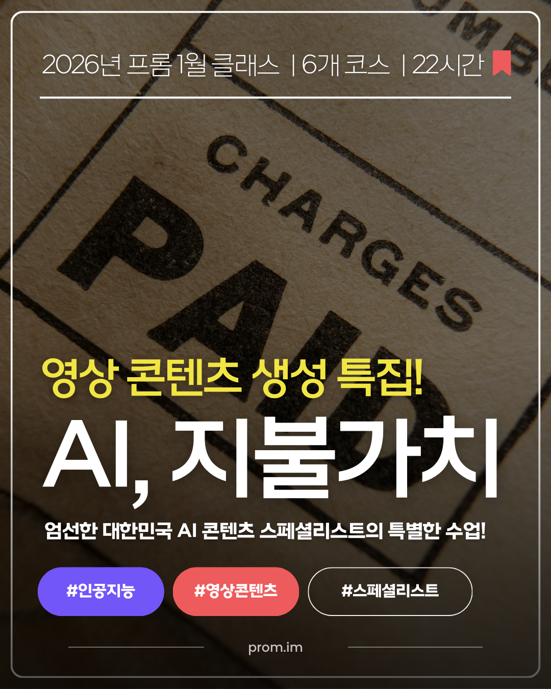 프롬은 2026년 1월, AI 콘텐츠 스페셜리스트 특집 수업을 준비했습니다. 대한민국 과학기술정보통신부 장관상 수상 감독의 특강, 대형 광고 캠페인 CD의 AI 컨버전 전략, 그리고 세계 최고 수준의 AI 생성 엔진을 하나의 워크플로우로 사용하는 방법까지. 프롬 수업의 새로운 시즌이 시작됩니다. ➡ 1월 수업 함께하기 |