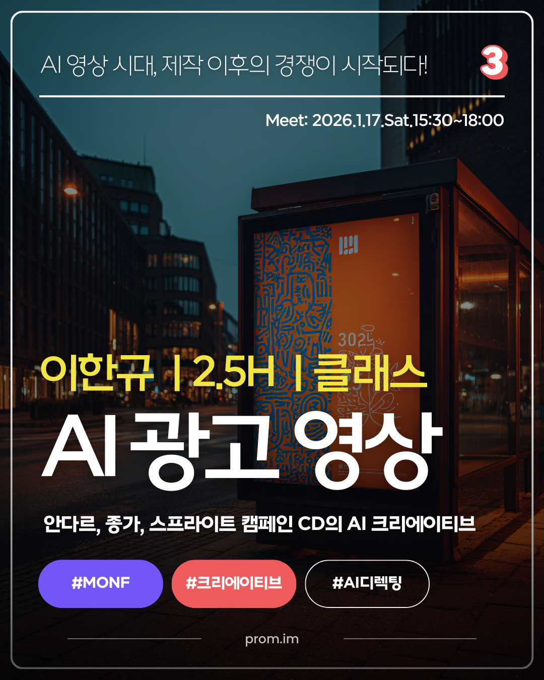AI가 제작의 진입장벽을 낮춘 시대, 경쟁은 '제작 이후'에서 시작됩니다. 종가 뉴욕 타임스퀘어 광고, 안다르 '모두의 레깅스', 부라보콘, 스프라이트 캠페인을 크리에이티브 디렉션한 MONF의 이한규 CD가 AI 기반 제작 시스템 전환 전략을 공유합니다. 1월 17일(토) 오후 3시 30분, 2시간 30분의 집중 클래스입니다. ⤵️ |