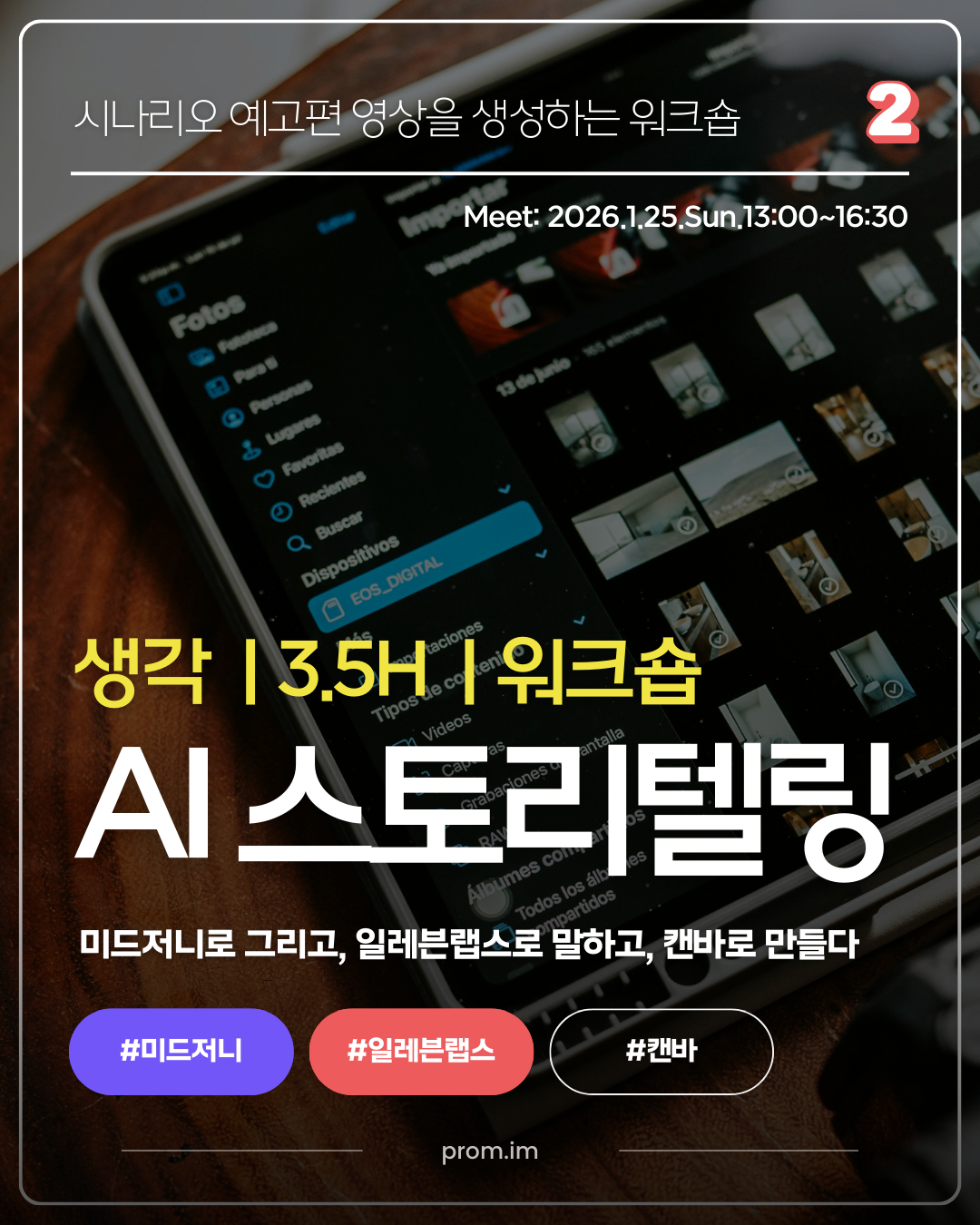 프롬의 1월 모든 수업을 25% 할인된 가격에 수강할 수 있습니다. AI 스토리텔링 클래스(8시간), AI 광고영상 제작 클래스(2.5시간), AI 올인원 생성 워크숍(10시간), AI 시네마 특강(1.5시간)까지. 올인원패스 수강생에게는 강의 자료 및 프롬프트 템플릿이 제공되고, AI 생성 크레딧이 일부 제공되며, 비공개 수상작 상영, 네트워킹과 1:1 피드백 특전 등의 혜택이 포함됩니다. ⤵️ |